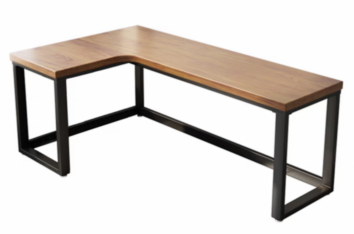 台面:采用优质E0级环保实木颗粒板;饰面纸:采用优质三聚氰胺浸渍纸,其表面耐刮、耐磨、耐腐蚀、耐高温、不怕烟头烫,颜色种类任选;胶水:采用热熔胶;五金配件:采用优质五金连接件;五金铁架:40*40方管1.2mm厚