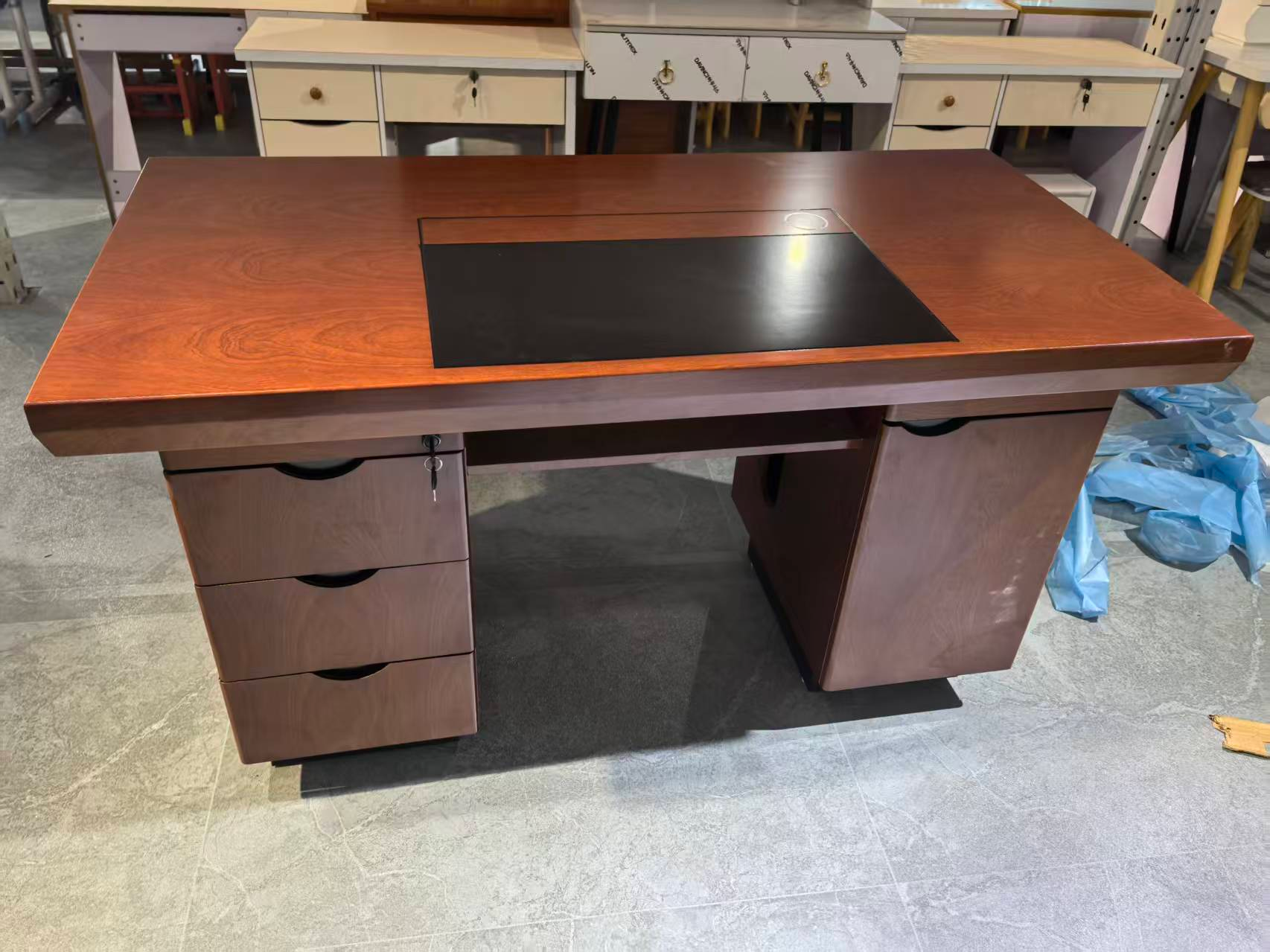 材质:台面贴面材料:采用优质仿木皮;台面基材:采用优质E1级环保高密度板;其他部分:采用免漆板制作;油漆:面漆采用PU聚脂漆;五金配件:采用优质五金连接件;