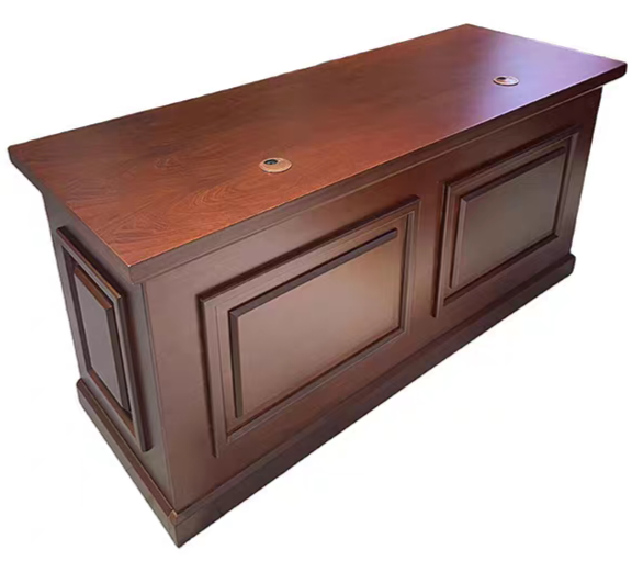 贴面材料:采用优质胡桃木皮,平整度、稳定性高,误差不大于0.1mm,纹理清晰自然、色泽一致;基材:采用优质E1级环保高密度板,经过防虫、防腐、防潮等化学处理,不含对人体有害化学成分;油漆:面漆采用PU聚脂漆,底漆采用PE不饱和树脂漆,五底三面;工艺;五金配件:采用优质五金连接件;