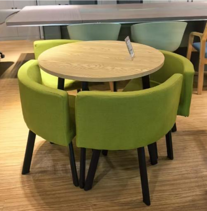 椅子:海绵坐板靠背布艺面料+五金脚架。