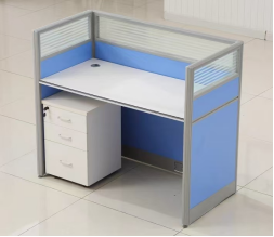采用优质铝材框架,铝材壁, 台面、键盘、主机架:采用 E1 级实木颗粒板; 标配:含主机架、键盘架、三抽活动柜。